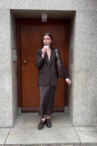 De Viso Stippen Rok van Neo Noir is een lange bruine rok met witte stippen en een zachte, comfortabele stof. Het elegante model geeft elke outfit direct een chique, verfijnde uitstraling.