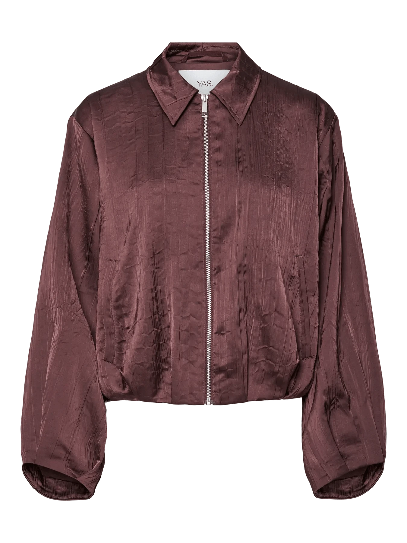 De Tira Bomber van YAS is een bordeauxrode jas met een glanzende finish, zilveren rits en stoere reverskraag. De relaxte fit geeft ‘m een nonchalante, maar chique uitstraling. Perfect te dragen met de bijpassende pantalon voor een statement look.