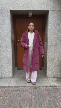 Deze lange puffer jas in diepe bordeaux is dé winter essential voor stijl én warmte. De afneembare capuchon, dubbele sluiting bij de zakken (rits + magneet) en een extra rits onderaan zorgen voor comfort en functionaliteit.